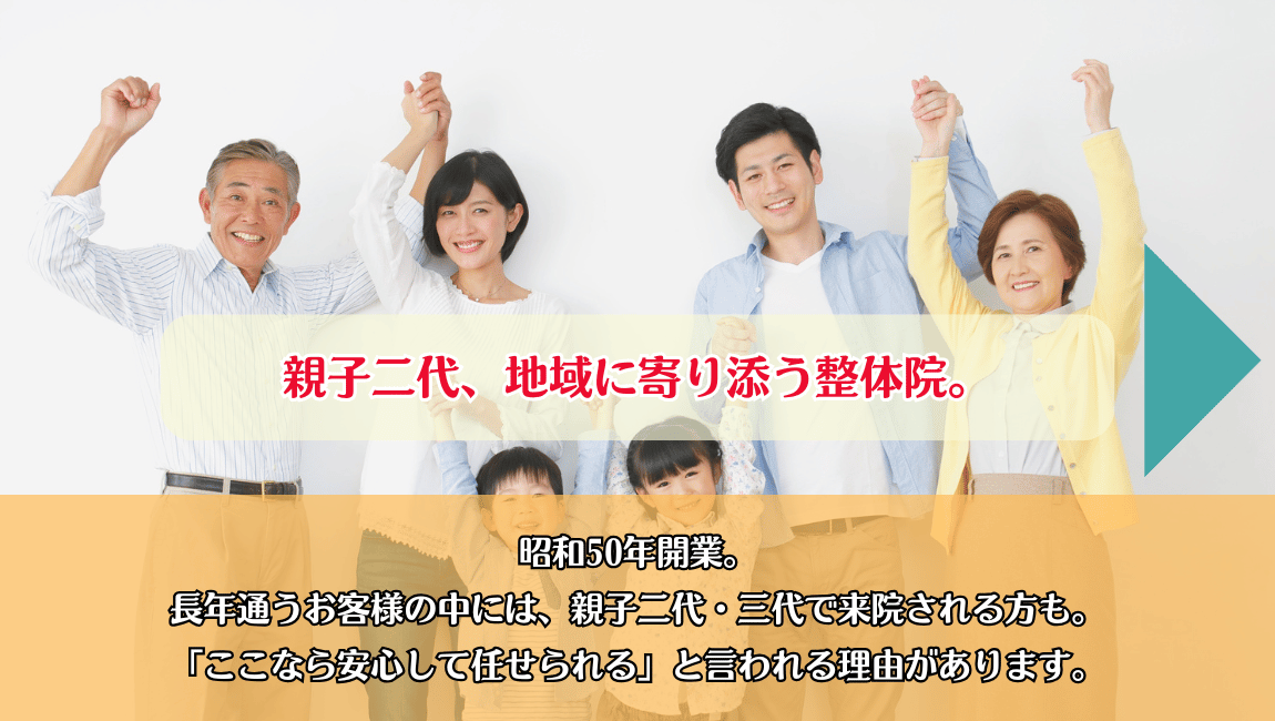 昭和50年開業、親子二代にわたって鈴蘭台エリアの腰痛施術に携わってきました。
